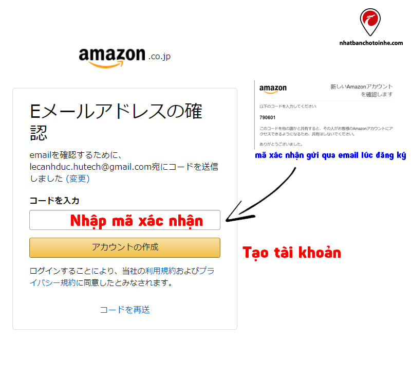Một mã xác nhận sẽ được gửi vào email bạn đăng ký tài khoản amazon ở bước trên . Sao chép đoạn mã đó và nhập vào ô nhập mã xác nhận. Nhấn “Đăng ký” là bạn đã có tài khoản ngay rồi!