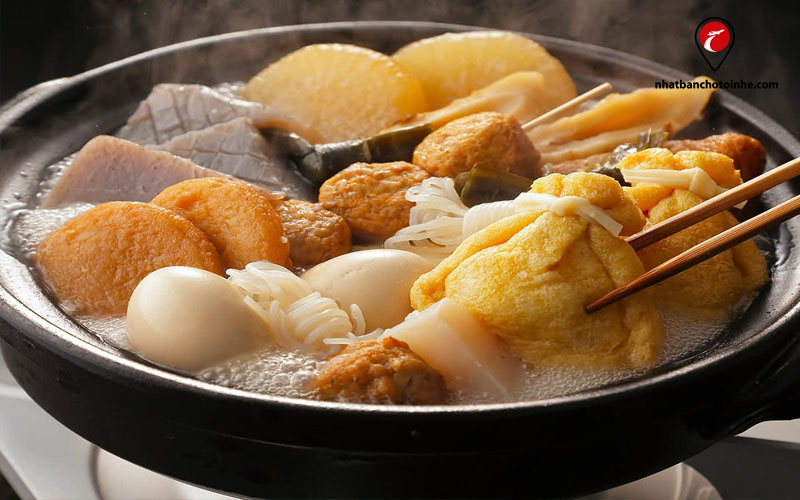 Oden được hiểu nôm na theo tiếng Việt có nghĩa là lẩu. Khác với khẩu vị người Việt, lẩu Oden có vị ngọt thanh của nấm, củ cải. Oden gồm các loại nguyên liệu như trứng luộc, konnyaku, xiên thịt heo hoặc bò, đậu hủ nhồi thịt,… Giữa cái lạnh của mùa đông mà được thưởng thức một nồi Oden thì còn gì sung sướng hơn.