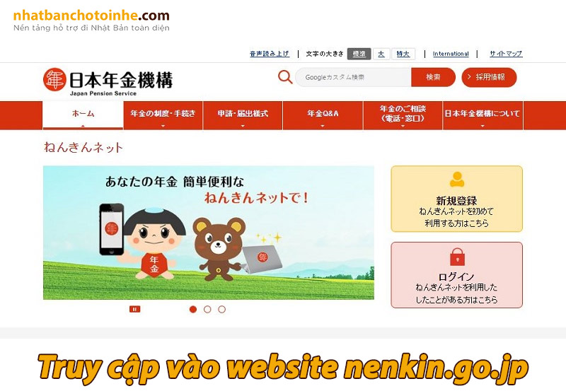 Nenkin Netto sử dung giao diện trang web tiếng Nhật, không hỗ trợ tiếng Anh hay bất cứ ngôn ngữ nào khác. Vì vậy, nó tạo ra khá nhiều trở ngại cho người nước ngoài khi thực hiện đăng ký. Để tự mình có thể kiểm tra Nenkin bất cứ khi nào. Dưới đây sẽ là những bước hướng dẫn đăng ký Nenkin Netto dành cho tất cả mọi người.