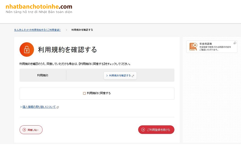 Bước 4: Nếu đồng ý với các điều khoản sử dụng của Nenkin Netto, thủ tục liên kết (* 1) sẽ bắt đầu.