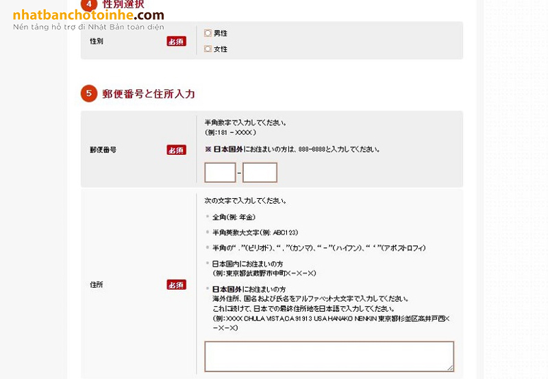 5. 郵便番号と住所入力: Nhập địa chỉ và mã bưu điện