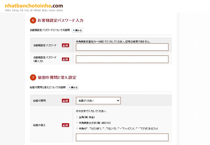 6. お客様設定パスワード入力: Cài đặt mật khẩu để đăng nhập Nenkin Net