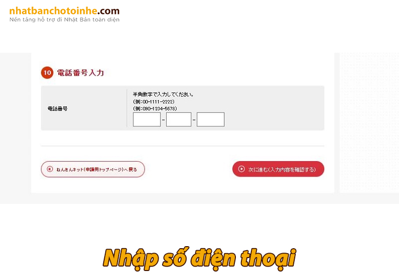 10. 電話番号入力: Nhập số điện thoại tại Nhật Bản