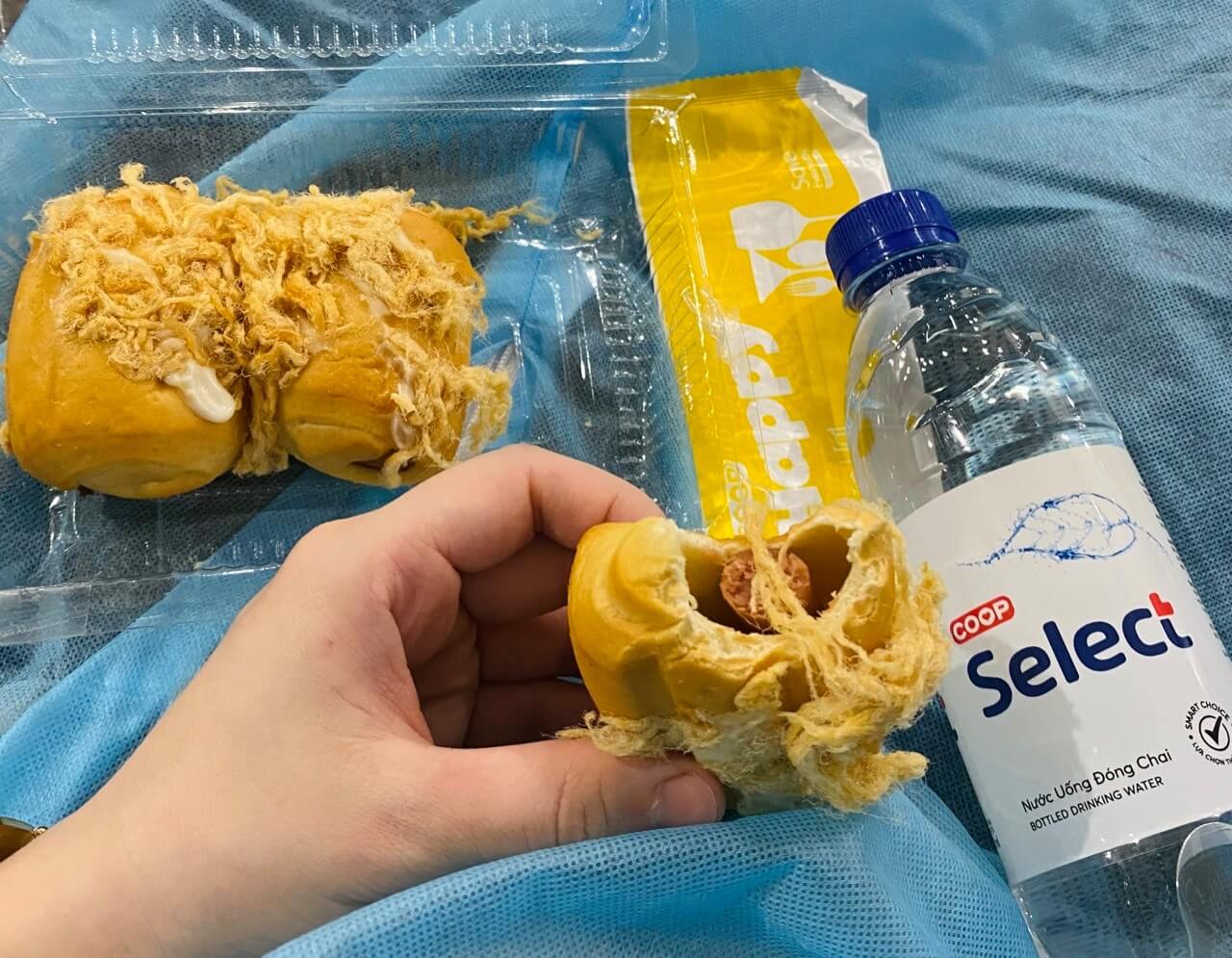 Giờ thì tranh thủ ra nhận đồ nè. Ở đây có khu phát bánh và nước free, nên các ông ai đói có thể vào lấy tuỳ thích. Bánh siêu ngon và nhiều chà bông lun á.