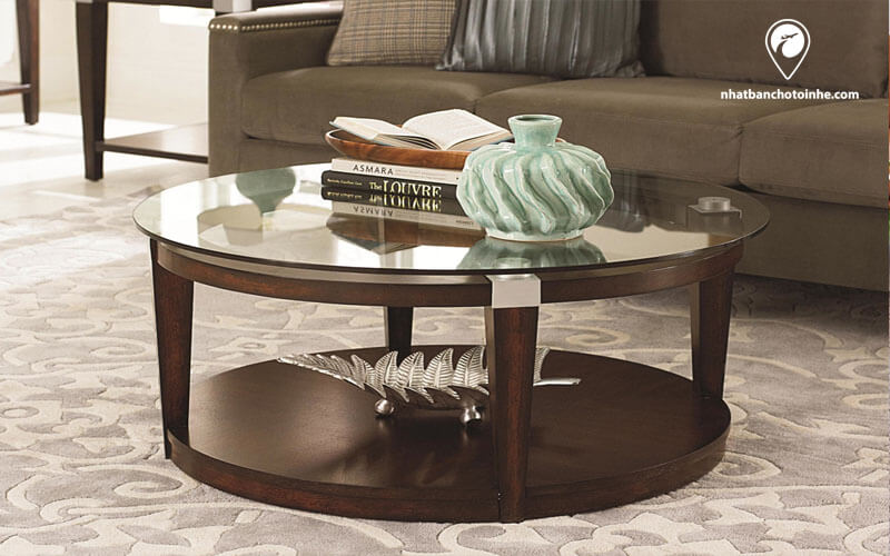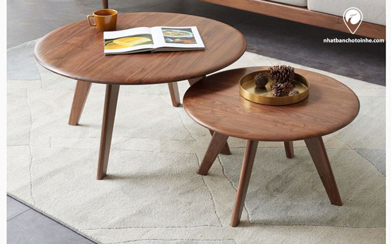 Bàn trà Nhật kiểu tròn sẽ mang đến cho không gian của bạn sự sang trọng. Vì chiều cao bàn Nhật khá thấp, bên nên cân nhắc mua các đệm ngồi bệt hoặc ghế ngồi có độ cao thích hợp. Chiếc bàn tròn mang đến cho không gian một sự ấm cúng, khi mà mọi người quây quần bên nhau.